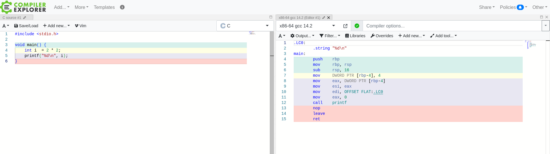 As an aside, Godbolt is a useful website that allows you to visualize compiled code. If you hover over a line of assembly, it will highlight the line of source code that it corresponds to.