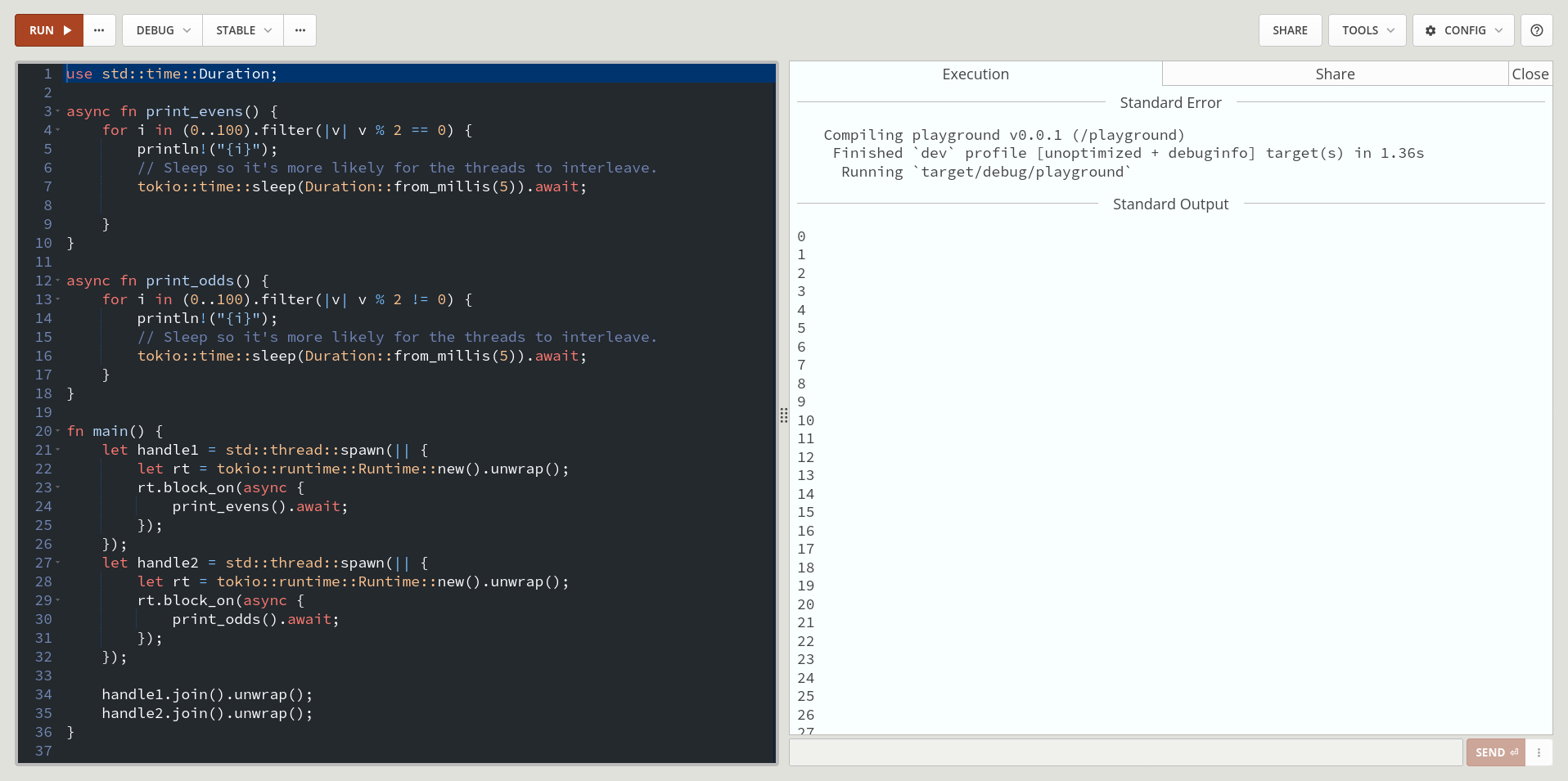 If you haven’t already, I would strongly recommend reading all of the Rust book, but more specifically Chapter 17, which focuses on asynchronous programming.